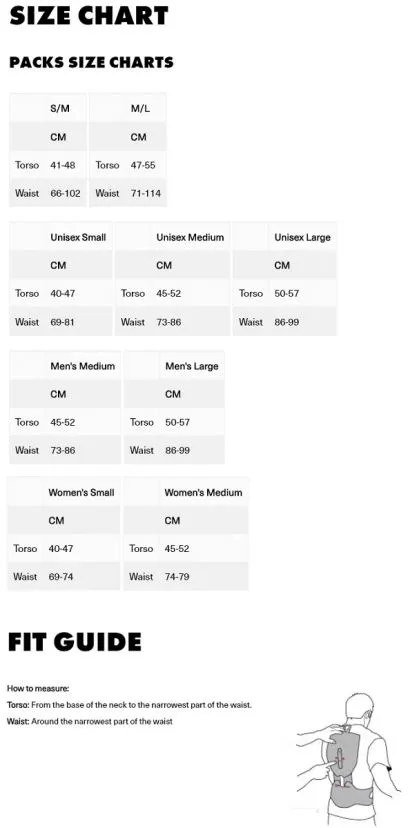 Risulta fondamentale la scelta della taglia che tiene conto, per lo schienale, della misura che parte dalla base del collo fino al punto più stretto della vita e della circonferenza vita.