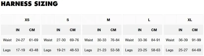La cintura è dotata di una fibbia di regolazione singola, i cosciali elastici non sono regolabili ma ti permettono di indossare rapidamente e facilmente l’imbrago.