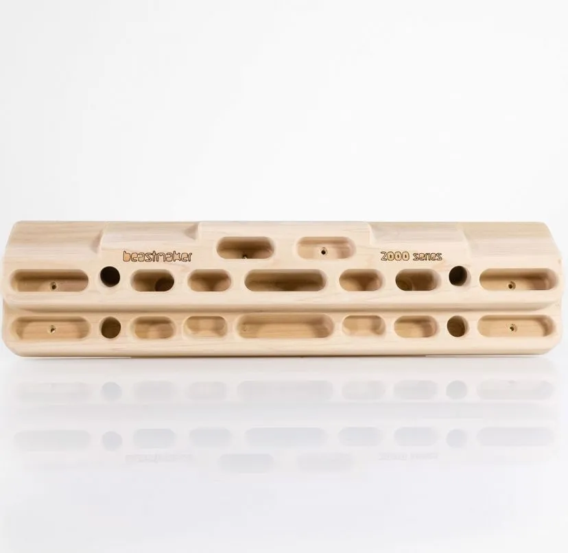 Beastmaker ha inventato due travi che ora sono tra i prodotti più conosciuti al mondo per l’allenamento in casa: questa versione, la versione 2000, è stata resa più difficile rispetto alla versione 1000. Vede infatti l’aggiunta di alcune prese svase sl posto delle maniglie in alto.