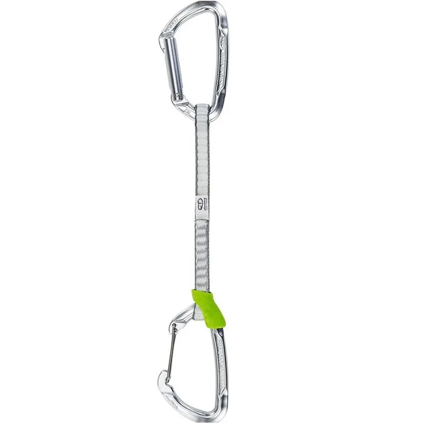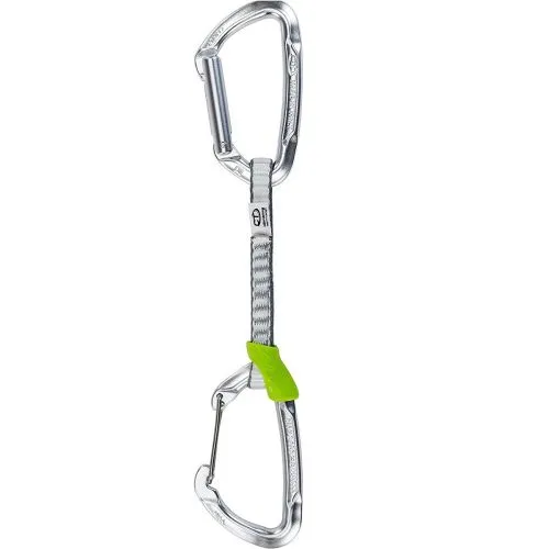 CT rinvio Lime Dy M arrampicata. Polivalente e leggero, è ideale per l’arrampicata sportiva, per lavorare i tiri e per l’alpinismo. Il moschettone superiore è dotato chiusura catch-free, che ne facilita l’aggancio e lo sgancio senza pericolo che la corda o altri ancoraggi si impiglino; mentre il moschettone inferiore di leva a filo. La fettuccia, leggera e resistente, ha uno spessore di 11 mm. Il ferma fettuccia, in gomma, ne evita la rotazione e la protegge dall’usura.