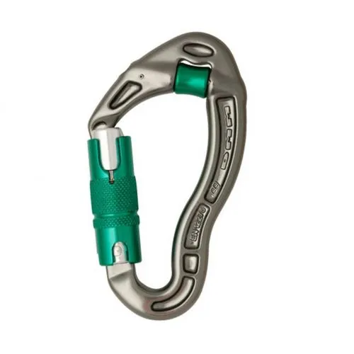 DMM Revolver Locksafe moschettone triplo movimento arrampicata ha una particolare forma ergonomica e presenta una puleggia lungo la superficie lato corda.