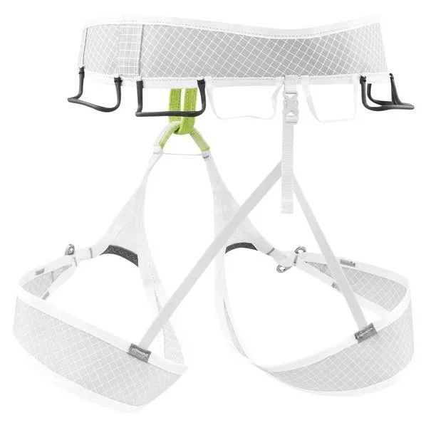 L’imbrago ti offre molte opportunità per organizzare la tua attrezzatura, dai quattro anelli portamateriali dotati di rivestimento, ai due in tessuto, alle quattro asole per moschettoni portamateriali e chiodi da ghiaccio.