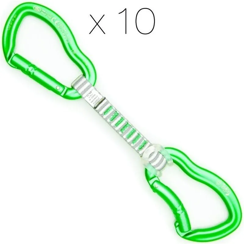 Il rinvio è composto da una fettuccia in dyneema lunga 12 cm e larga 13 mm e due fighissimi moschettoni Ergo a leva piena.