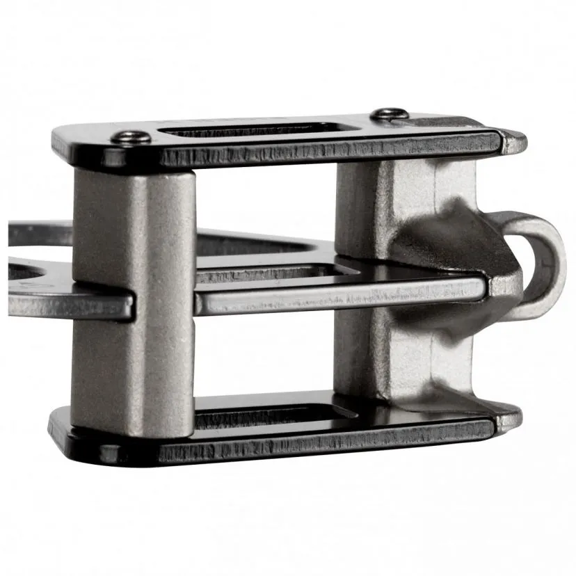 Le scanalature a V sono realizzate in acciaio per rendere il dispositivo duraturo nel tempo, senza incorrere a problemi di usura dovuti allo sfegamento della corda. L’inserto in acciaio impedisce inoltre il surriscaldamento del dispositivo.