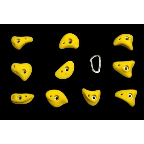 Il set Samsara Mercury contiene dieci prese medie da arrampicata, realizzate in poliestere.