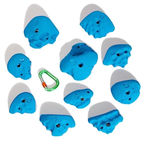 Il set Smog contiene dieci prese maniglie grandi da arrampicata, realizzate in poliestere.