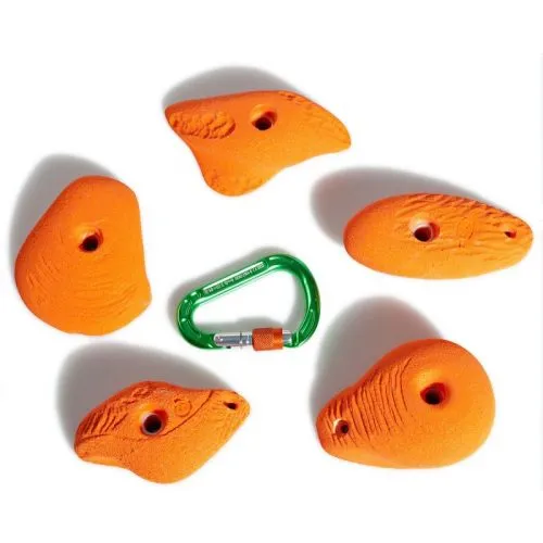 Il set Smog contiene cinque prese miste da arrampicata, realizzate in poliestere.