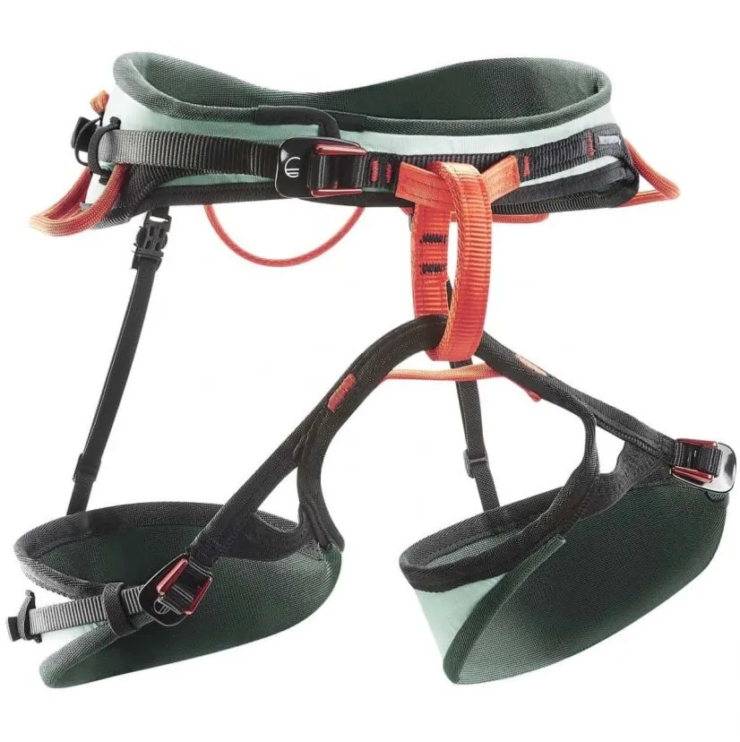 L’imbottitura in vita e nei cosciali è ventilata e confortevole a contatto con la pelle. Ha quattro ampie asole portamateriale rigide e il supporto per chiodi da ghiaccio!